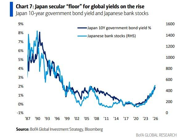 但该行计划在明年5月15日(下任美联储主席任期开始)之前结束这一做多长债的战术性仓位。理由包括:日本和中国(全球收益率的长期“底部”)的债券收益率正在上升,日本银行业因此受益;市场目前预计2026年第二家主要央行将加息(澳大利亚)。